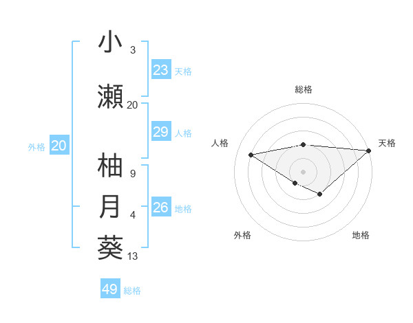 小瀬 柚月葵さんを姓名の画数から五運を鑑定