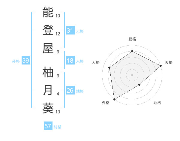 能登屋 柚月葵さんを姓名の画数から五運を鑑定