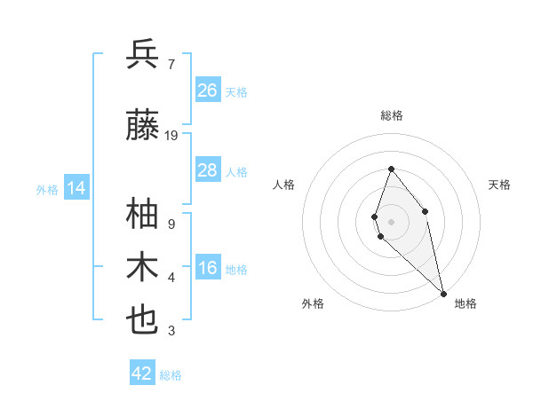 兵藤 柚木也さんの総格は42画の3点!