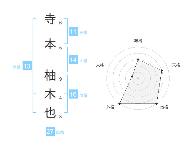寺本 柚木也さんの外格は13画の5点!