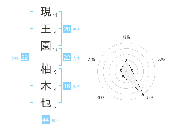 現王園 柚木也さんの総格は44画の2点
