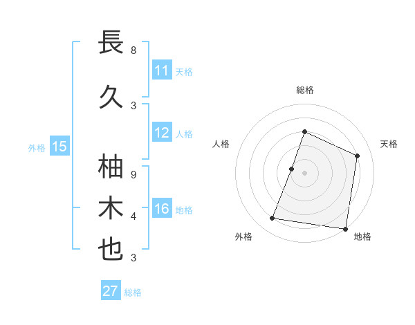 長久 柚木也さんを姓名の画数から五運を鑑定