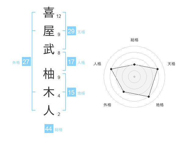 喜屋武 柚木人さんの天格は29画の4点!