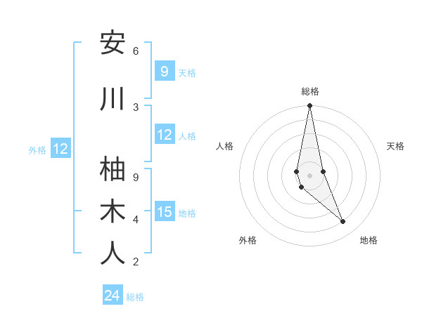 安川 柚木人さんの総格は24画の5点!