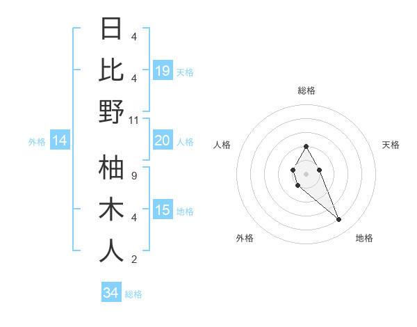 日比野 柚木人さんを姓名の画数から五運を鑑定