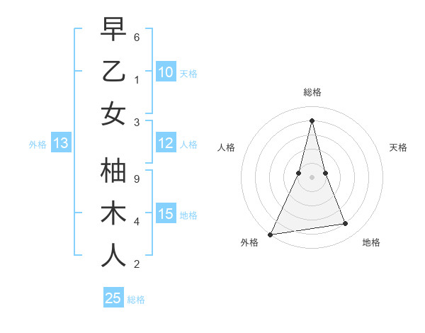 早乙女 柚木人さんを姓名の画数から五運を鑑定