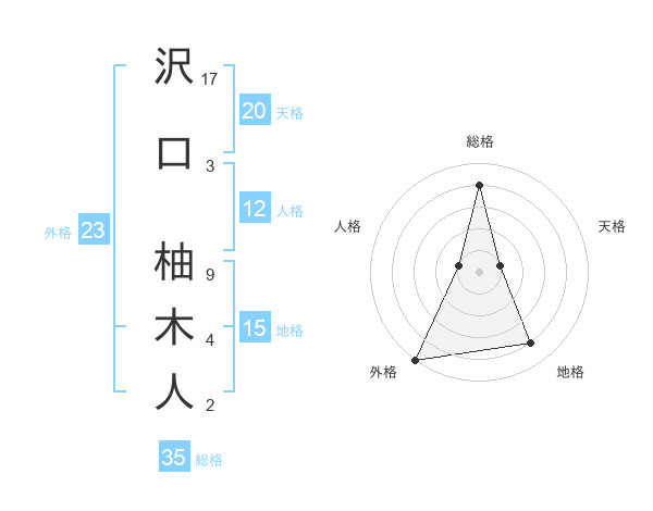 沢口 柚木人さんを姓名の画数から五運を鑑定