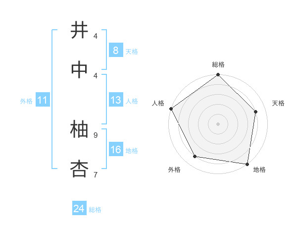 井中 柚杏さんを姓名の画数から五運を鑑定