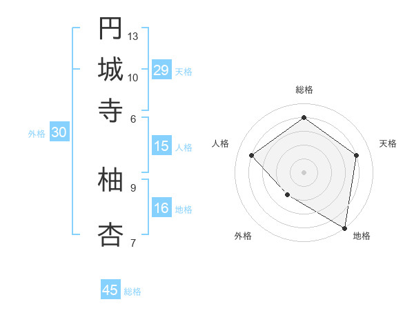 円城寺 柚杏さんの総格は45画の4点!