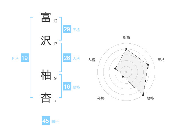 富沢 柚杏さんの総格は45画の4点!