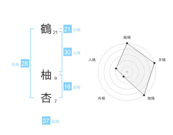 鶴 柚杏さんの天格は21画の5点!