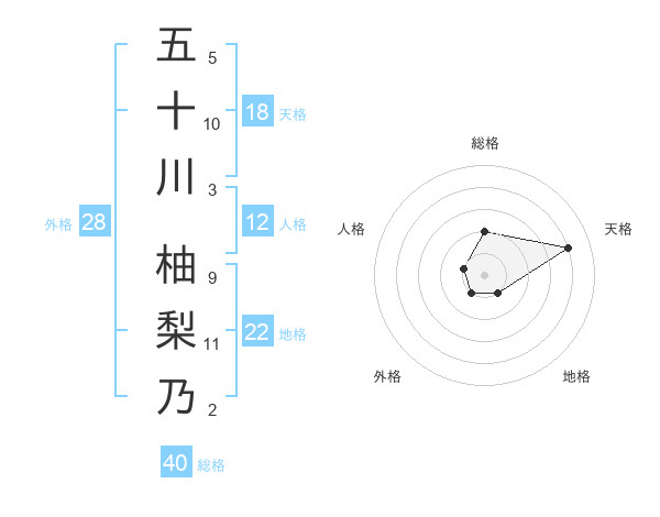 五十川 柚梨乃さんの総格は40画の2点