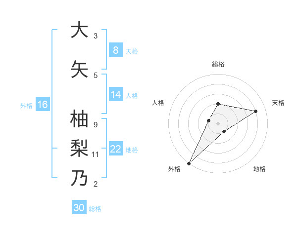 大矢 柚梨乃さんを姓名の画数から五運を鑑定