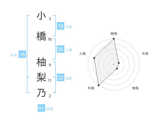 小橋 柚梨乃さんを姓名の画数から五運を鑑定