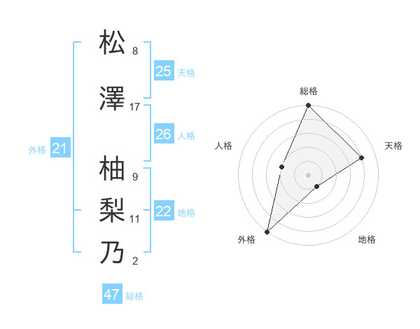 松澤 柚梨乃さんを姓名の画数から五運を鑑定