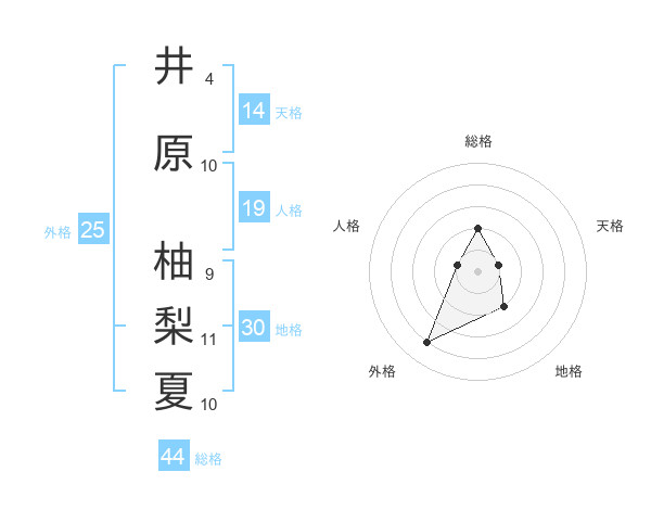 井原 柚梨夏さんを姓名の画数から五運を鑑定