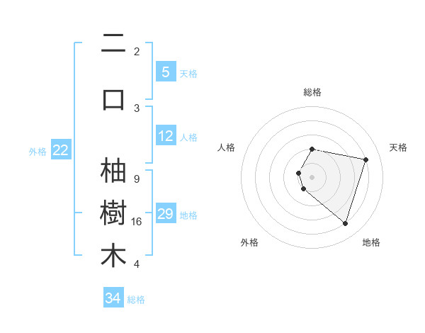 二口 柚樹木さんを姓名の画数から五運を鑑定
