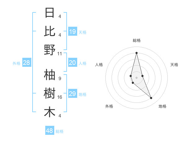 日比野 柚樹木さんの総格は48画の4点!