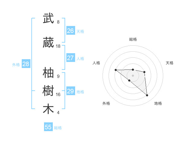 武蔵 柚樹木さんを姓名の画数から五運を鑑定