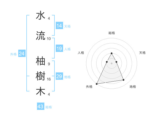 水流 柚樹木さんを姓名の画数から五運を鑑定