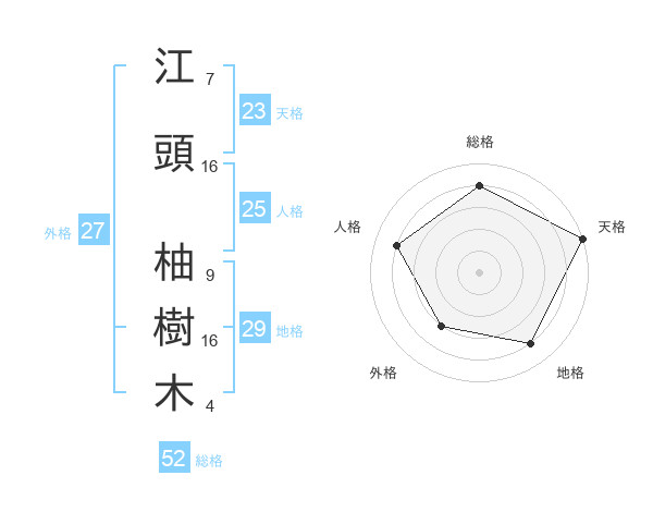 江頭 柚樹木さんを姓名の画数から五運を鑑定