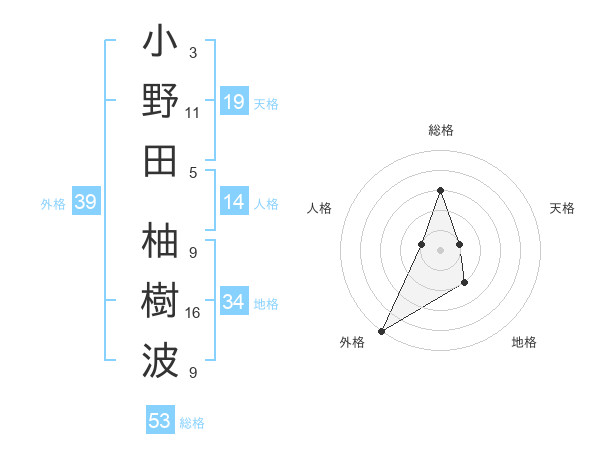 小野田 柚樹波さんを姓名の画数から五運を鑑定