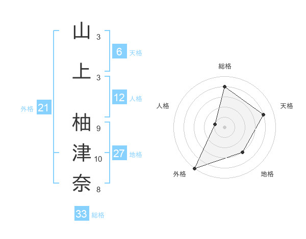 山上 柚津奈さんを姓名の画数から五運を鑑定