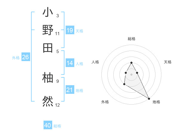 小野田 柚然さんを姓名の画数から五運を鑑定