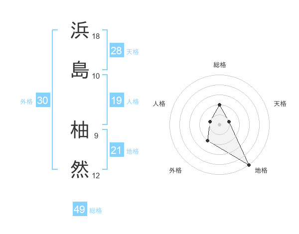 浜島 柚然さんを姓名の画数から五運を鑑定