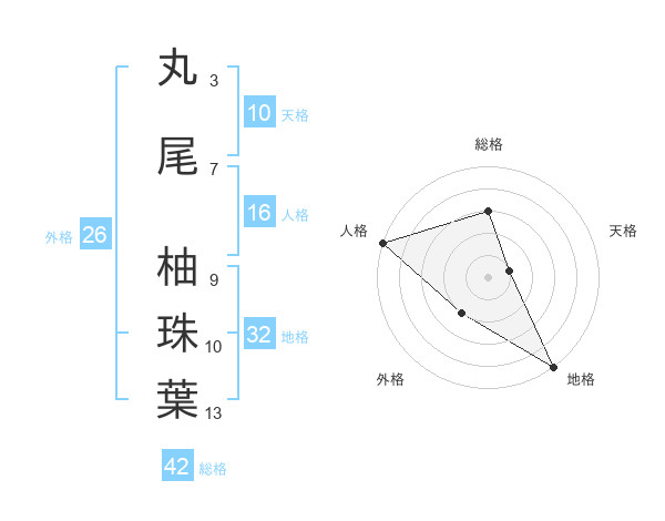 丸尾 柚珠葉さんを姓名の画数から五運を鑑定