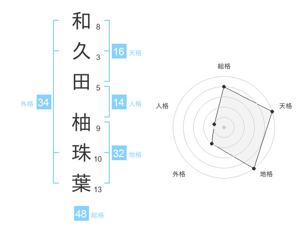 和久田 柚珠葉さんの天格は16画の5点!