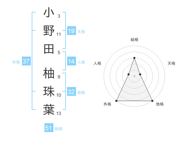 小野田 柚珠葉さんを姓名の画数から五運を鑑定