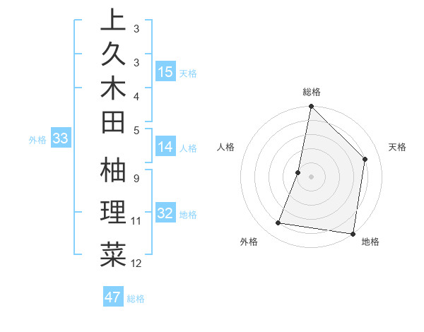 上久木田 柚理菜さんの総格は47画の5点!