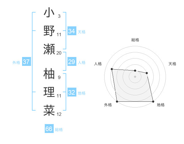 小野瀬 柚理菜さんを姓名の画数から五運を鑑定