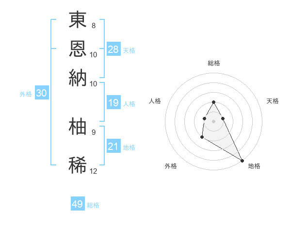 東恩納 柚稀さんを姓名の画数から五運を鑑定
