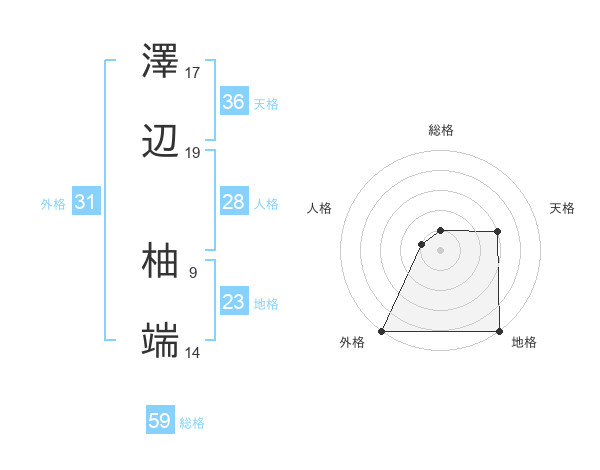 澤辺 柚端さんの総格は59画の1点!
