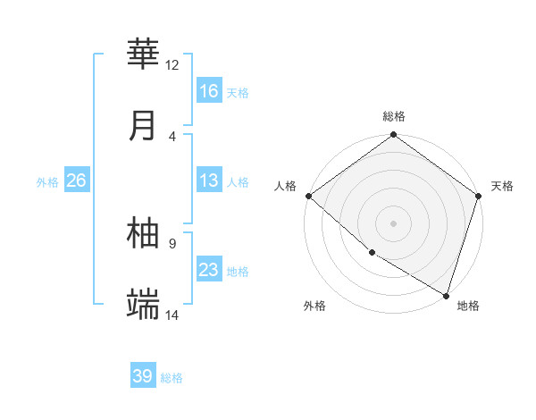 華月 柚端さんの総格は39画の5点!