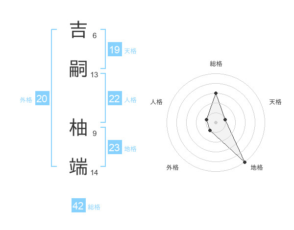 吉嗣 柚端さんの外格は20画の1点!