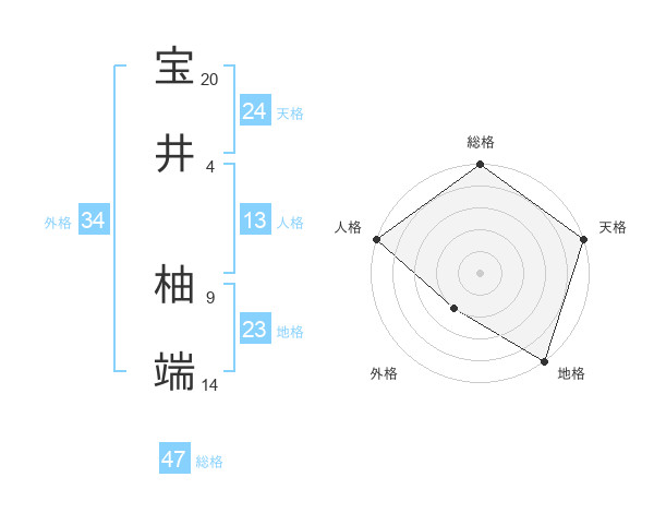 宝井 柚端さんを姓名の画数から五運を鑑定