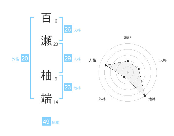 百瀬 柚端さんを姓名の画数から五運を鑑定