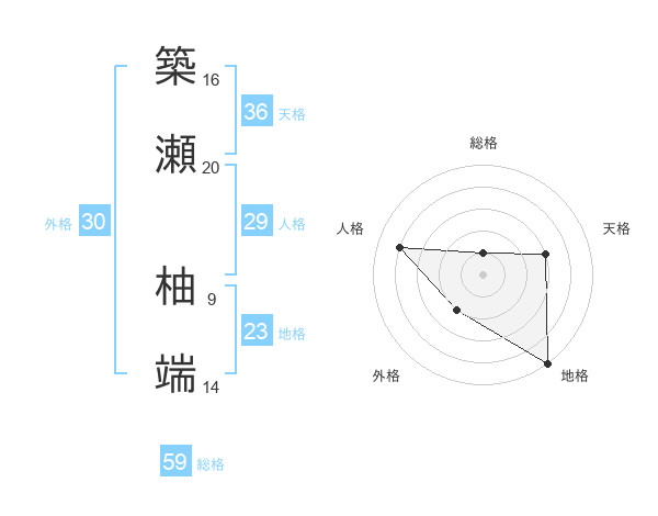 築瀬 柚端さんの総格は59画の1点!