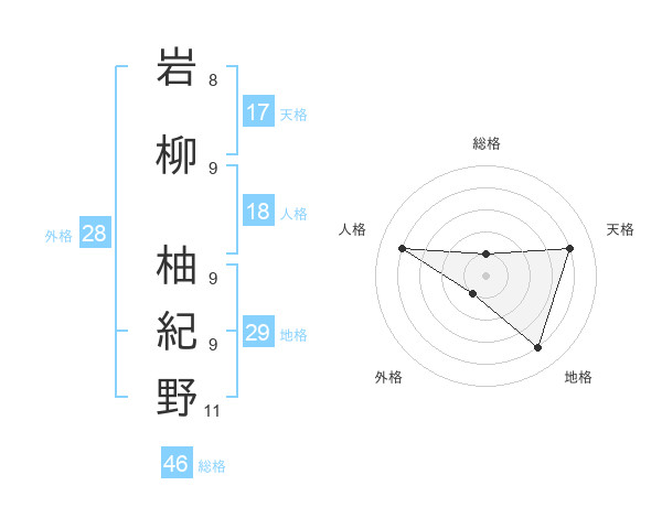 岩柳 柚紀野さんを姓名の画数から五運を鑑定