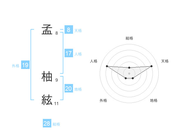 孟 柚絃さんの総格は28画の1点!