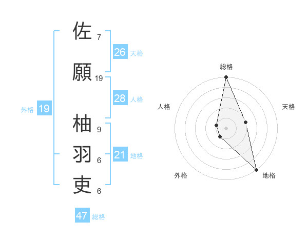 佐願 柚羽吏さんを姓名の画数から五運を鑑定