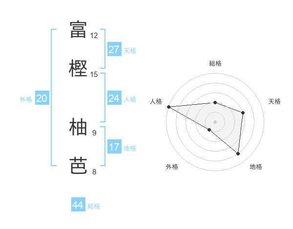 富樫 柚芭さんの総格は44画の2点!
