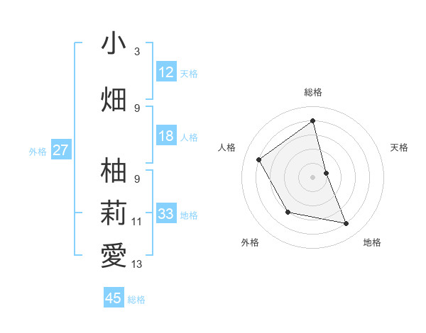 小畑 柚莉愛さんを姓名の画数から五運を鑑定
