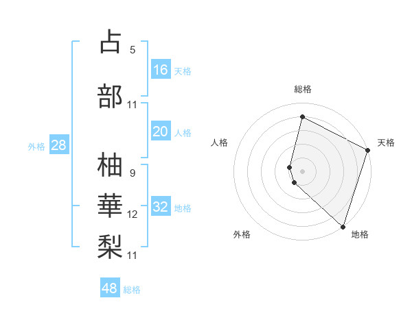 占部 柚華梨さんの天格は16画の5点!