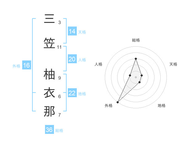三笠 柚衣那さんを姓名の画数から五運を鑑定