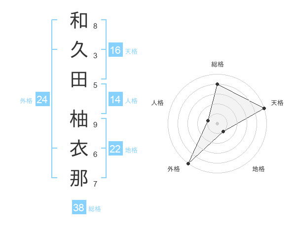 和久田 柚衣那さんを姓名の画数から五運を鑑定