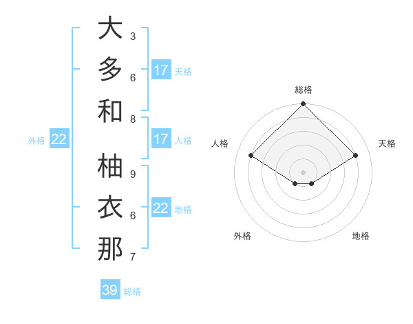 大多和 柚衣那さんの天格は17画の4点!
